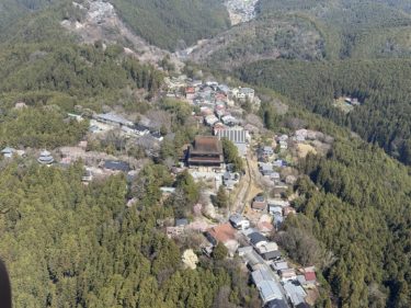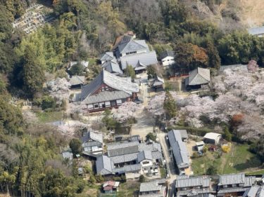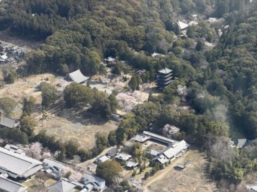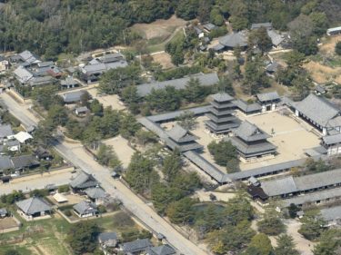 From the air: Yakushi-ji, Hōryū-ji, Yata-dera, and Ishibutai Kofun.