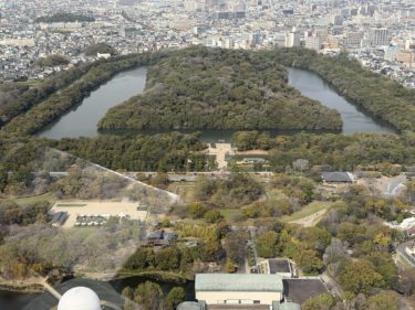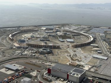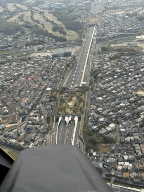 ヘリコプターに乗って必ず観たかったのは仁徳天皇陵でしたが、本日も綺麗に見えました。そして解体中の万博リング。強者どもが夢の後…。