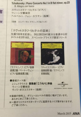 ANAの機内オーディオでは今月のクラシ