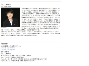 来週末、ピアニスト藤田真央くんと、NHK交響楽団の初めての共演。