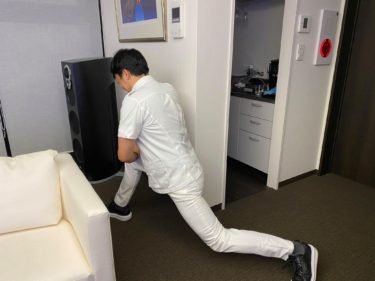 今日の診療も終盤に入り、すこしづつ可動域を拡げています。(笑)