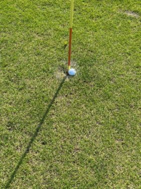 ロングホール真っ直ぐ飛んで中央のIPフラッグにホールインワンしていました。