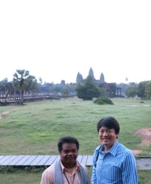 8年前、ガルーダ像を前に。東洋のモナリザは、ちょうど僕の頭の上に見えます。