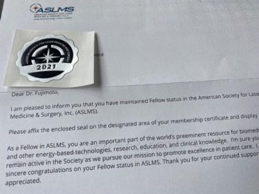 毎年この季節になると、米国レーザー医学会の専門医(Fellow)シールが送られてきます。