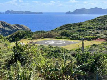 母島で事故が起こるとこのヘリポートから滑走路のある硫黄島へヘリ搬送し、自衛隊機で都内は都立広尾病院に10時間で移動できるそうです。