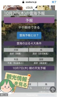 本日の竹田城跡の雲海予想はこちらでした。