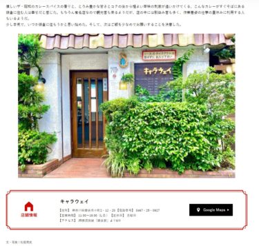 鎌倉高校の同級生の家の「キャラウェイ」カレーが紹介されています。