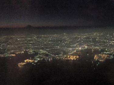 日が沈んだ後の飛行機からしか見えない富士山を捕らえました。