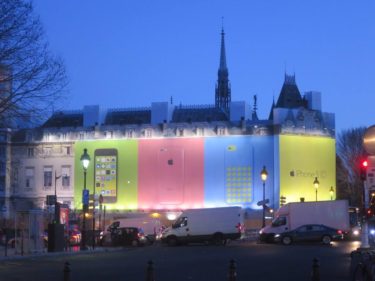 パリのセーヌ川沿いでの一コマ。工事中の建物の外装ですが、可愛くないですか?