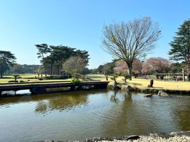 桜吹雪の中、今日は初めて水海道ゴルフクラブへ。