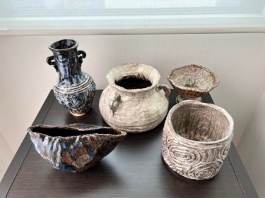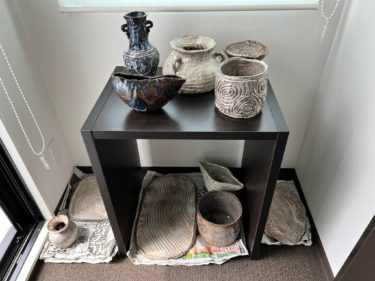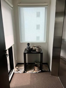クリニックFエレベーターホールに陶器の飾り棚を作りました。