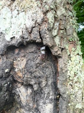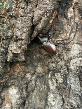 近くのクヌギの木の幹には大きなカブトムシが3匹張り付いていました。
