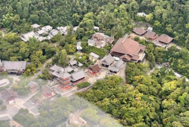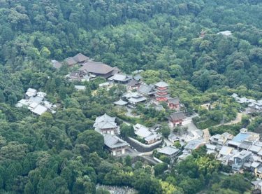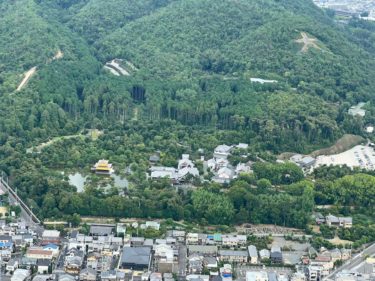 ヘリの中も流石に暑い。清水寺が見えます。