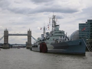 ロンドンタワーブリッジと戦艦の合わせ技が大英帝国を彷彿させますね。