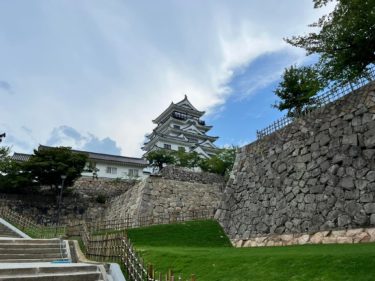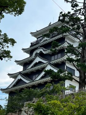 築城400年に合わせ改修工事が2020年10月から2022年8月28日まで行われていて、数日早くて中には入れなかったのですが、天守の北面は黒い鉄板張りがほぼ復元されていました。