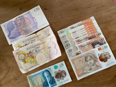 最初の2枚は手元にあったイギリスポンド紙幣。