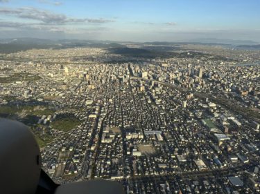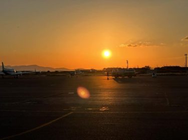甲南空港より日の入り間際に13分飛行で、岡山空港へ。