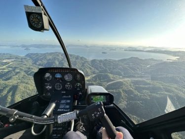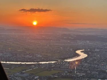 実はヘリで飛ぶと西から陽が昇るように見えることもあるんですよね。