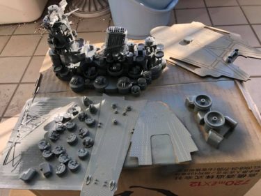 今日の大和は早く起きたので、メタルプライマーで下地を加工した後にベランダで金属部分の塗装を始めました。