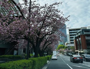 ニューオータニの牡丹桜並木が満開に近いです。