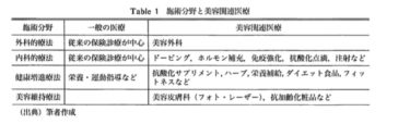 Although there are many types of aesthetic medical treatments, they can be classified by the type of procedure, as shown in Table 1. In addition to cosmetic surgery, which was previously the mainstream, there has been an increase in internal medicine treatments such as doping therapy, hormone replacement therapy, immune enhancement, antioxidant drips, injections, which do not require as much expertise. Relatively new fields include health-promoting therapies that use supplements, foods, herbal medicine, enzymes, etc., to supplement nutrition, exercise, and rest. Furthermore, there has been an increase in aesthetic dermatology treatment centered on treatment with photo-laser devices, which have made rapid technological progress over the past decade. The reason why the table uses the term “maintenance therapy” is that while other therapies are transient, meaning that when the treatment is completed, the patient’s visits usually end, maintenance therapy is a continuous therapy that aims to maintain the achieved aesthetic results.