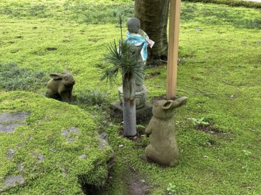 実は別料金の奥庭があり、そちらに入る事が出来るのですが、たまたま僕が奥庭を歩いていると、列の先頭にカメラを構えた友人が。