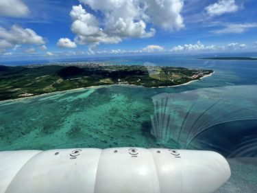回転翼水上機なので僕の場合は免許の限定解除が必要なので、副操縦士席ですが、自分で操縦しない分、空からの珊瑚礁の美しさにやられました。