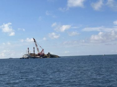 石垣島と西表島の中間あたりに少し前に座礁した船があったのですが、つい先日の台風で船体が折れてしまったのだとか。