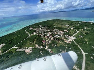 JALジンベイジェットと上空からの宮古島