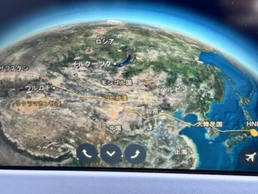 ロシア上空を通過できないので、中国上空、タマクラカン砂漠、黒海など、まさにアジア大陸横断でフランクフルトへ。