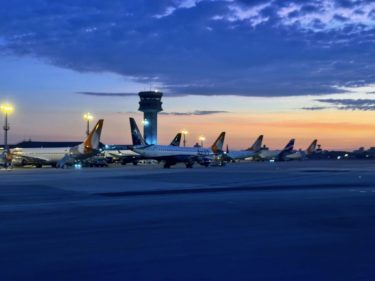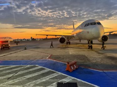 移動日です。朝の空港は美しい。