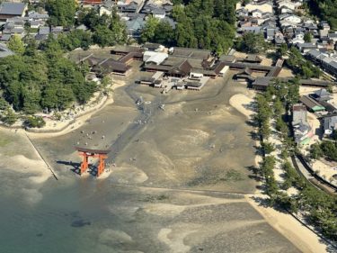 世界遺産の鳥居が見えます。