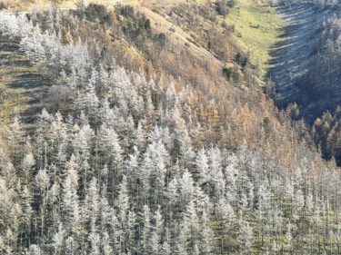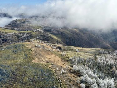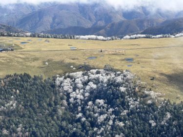 美ヶ原に向かって急激に高度が上がりますが、高い場所は冠雪が。