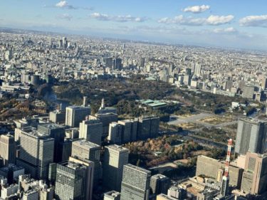 東京タワーと増上寺を臨み、皇居、スカイツリーを通過して帰京しました。