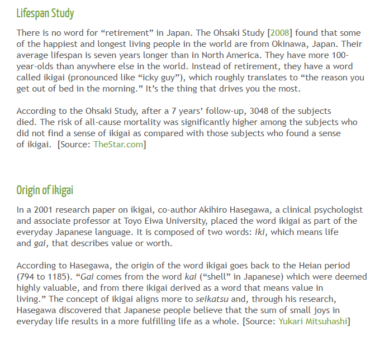 まさにそのIKIGAIを表現した英文記事があったので紹介しますね。