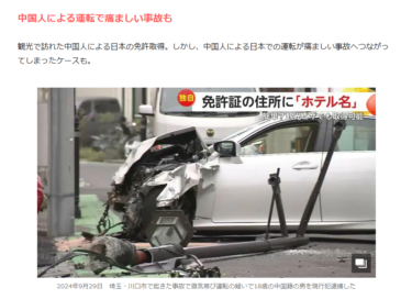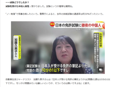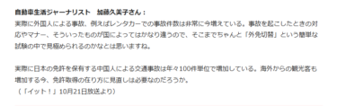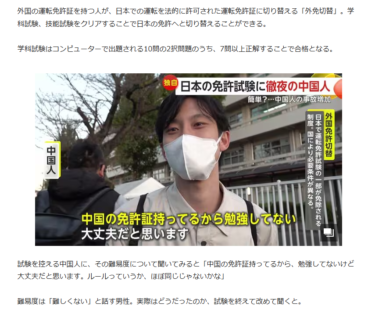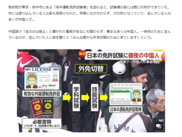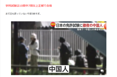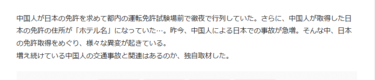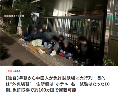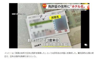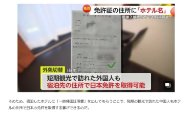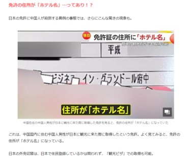 中国人が国内ホテルを住所にして、学科試験10問で日本の運転免許を取らせるビジネスが横行しているそうです。