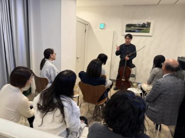 本日はチェリスト金子鈴太郎さんをお招きしたゴルフ医科研にてチェロとワインの会。バッハ無伴奏組曲第4組曲でした。