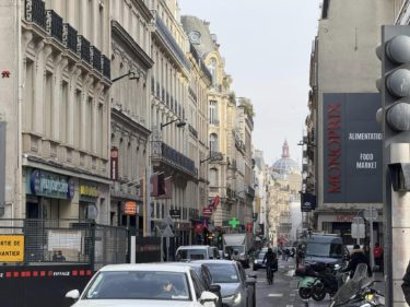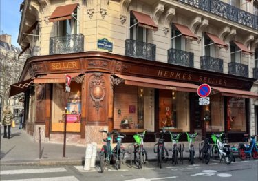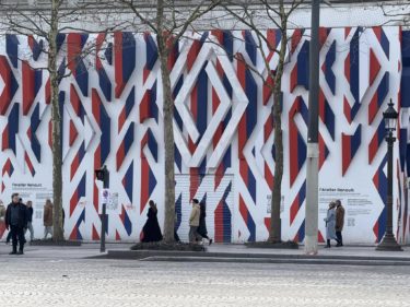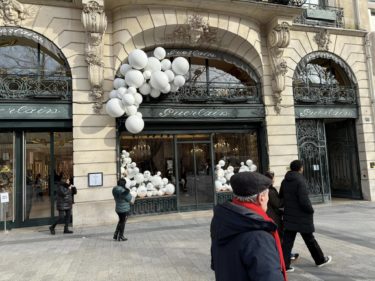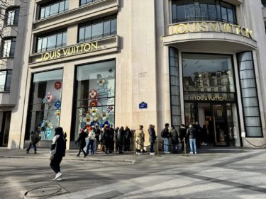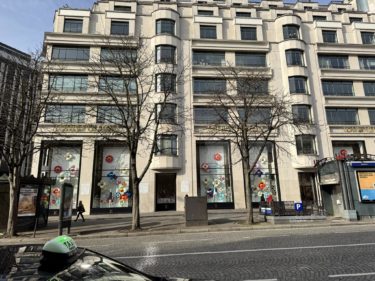 サンゼリゼ通りのパリのルイヴィトンの横には巨大なヴィトンのトランクが。