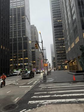 霧のニューヨーク早朝。12度。