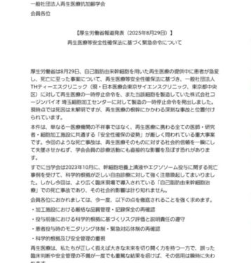 「幹細胞上清は、がん化リスクが低いかもしれない。しかし“低い”と“ゼロ”は全く違う。われわれ臨床家は、ゼロでないものを安易に患者へ投与してはならない。」