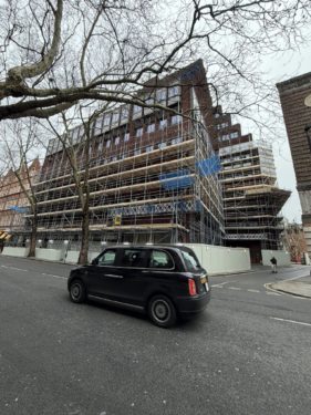 Directly across from the Harry Potter theatre on Shaftesbury Avenue—just behind the billboard featuring the double-decker bus—there’s a building where Mitsubishi Estate is undertaking the construction work.