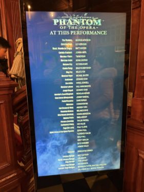 このミュージカルはそれこそ20回以上観ているでしょうか。劇場の名前が変わってからは初めてかもしれません。今はニューヨークでも観られなくなってしまったんですよね。本当に音楽が素晴らしく、舞台も豪華、ストーリーも大好きですが、久しぶりに観ると圧倒されますね。