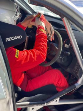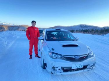 前の車の運転手は世界の新井敏弘選手。