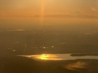 夕日に映える富士山にホッとする日本人でした。
