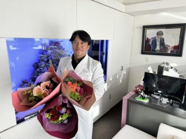 今日はスタッフの誕生日。三つの花束。